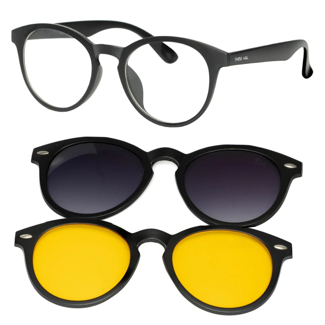 Os óculos clipon 3 em 1 tem um ótimo custo-benefício! O conjunto funciona assim: Você faz as lentes de grau apenas na armação e faz o encaixe dos clipers, o transformando em um óculos de sol com grau!
