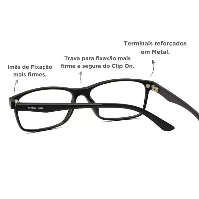 Os óculos clipon 5 em 1 tem o melhor custo-benefício que você poderia encontrar. O conjunto funciona assim: Você faz as lentes de grau apenas na armação, e fazendo o encaixe dos clips você tem 5 opções de óculos de sol com grau!