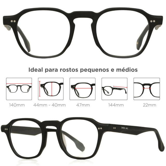 Essa referência está gravada nas hastes dos óculos, você pode comparar essas medidas de tamanho com alguma armação que tenha em casa! (largura da lente | | Ponte - Haste)