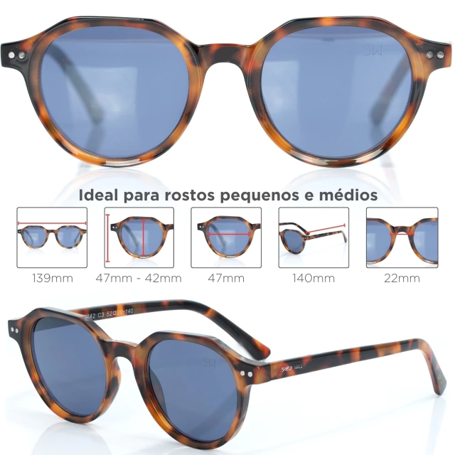 Com um shape arredondado e a parte superior sextavada, ele tem uma construção de alinhamento que encaixa com facilidade em qualquer tipo de rosto. Além dos detalhes na frente, a sua lente é construída de forma vazada, levemente profunda, que dão uma estética de olhar mais profundo. Detalhes que fazem a diferença.